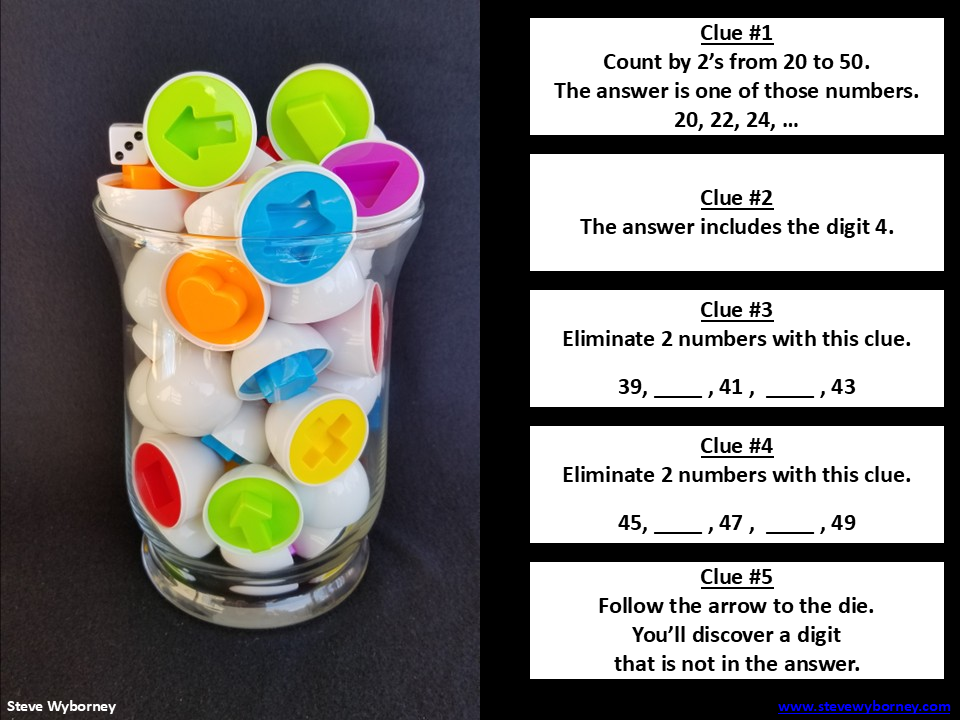 Grades 3-8: “Five Clues Lead to 3 Choices”