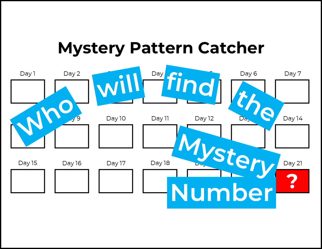 The online Mystery Pattern Checker is released several days after the challenge begins. When classes begin to have predictions about what the final number might be, I’ll post the pattern checker. It works in a unique way. Instead of simply asking for the final number, it asks for the final several numbers in a row. If your class finds the Mystery Number in Day 21 – and understands the pattern – you will be able to complete the Mystery Pattern Checker. Stay tuned for the link.